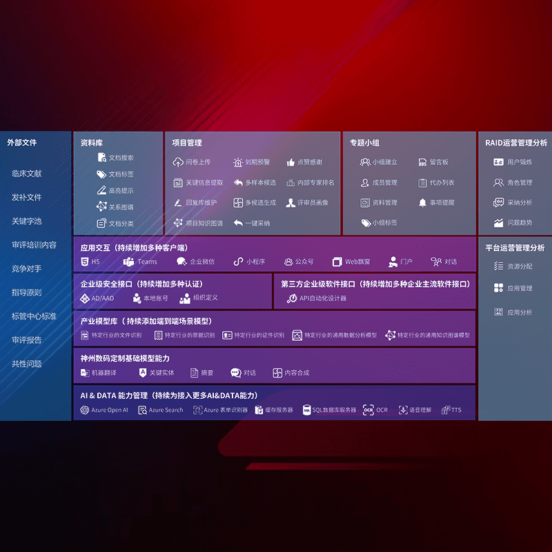 医疗器械产品上市前,,,,要熟悉严格与繁复评审标准,,,,整理分析监管机构指导文件中的海量信息。。。。企业急需一个智能化解决方案,,,,提升知识管理效率,,提高评审通过率,,,,以提升其市场竞争力。。。