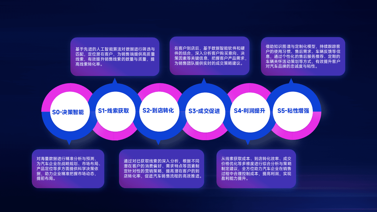 通过拓宽潜在客户来源、、、、优化线索分配并提高到店转化率,,,以增强销售效率。。。同时,,,,利用线索数据不断优化分析模型,,,,有效提升转化率,,扩大营销影响力。。。